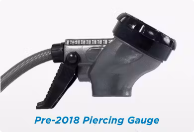 The DVA-1 adapter will let you use your piercing-style gauge with the new self-sealing valve cans. Just attach the DVA-1 to the self-sealing valve, then attach your gauge to the DVA-1.